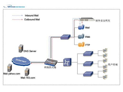由于该企业垃圾邮件繁多,我们采用了 Websense 的 Riskfilter 产品,强大的 ASA 垃圾邮件数字指纹数据库识别垃圾邮件的准确率最高可达 99.2 %,基于行为识别和内容分析的垃圾邮件过滤技术极大的降低了误报率。垃圾、病毒库全球自动更新,实施后基本不需要人工管理,可以根据实际需求,定制用户发件人邮件地址黑名单和白名单。而且系统每天自动产生垃圾邮件摘要信息,用户可以直接处理垃圾邮件,彻底解决了误报的问题。